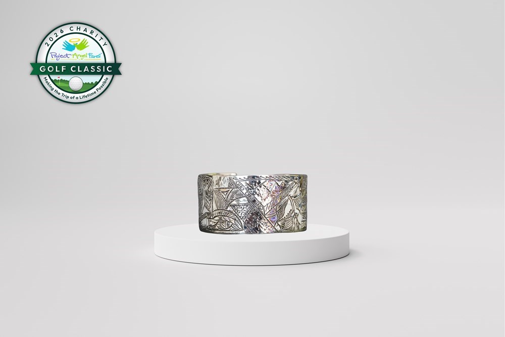 Hand Tooled 1-1/4” sterling silver cuff bracelet by Metalsmith Jeweler Kathy Schrader – Arnold of Wimberley, TX. Each line represents the blow of the hammer on a chasing tool. Not adjustable - -not meant to be bent or squeezed.
